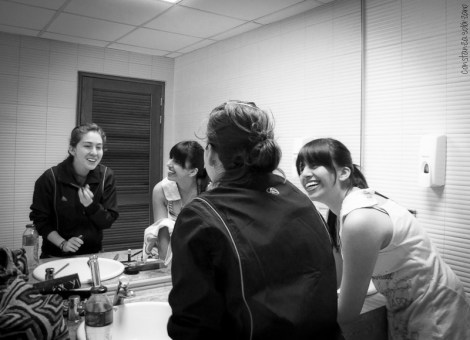 En el baño, el caso de Jolie no se limitó a su delgadez sino a su plano de “quita maridos.” Así como los hombres que dialogaban sobre ella en la sala de cardio, un grupo de mujeres comentaba lo que se decía en el programa de Fox Sports, mientras se miraban en el espejo. Se empezaron a cuestionar el comportamiento de Jolie, comparándolo con el de Jennifer Anniston, claramente una separación conjugada entre el sistema binario de la moralidad y también estructurada por el contexto de esta relación particular entre las actrices: la mala y la buena. Por otro lado, de manera irónica, fueron al punto de la belleza física de Jolie y de nuevo la comparación entre las dos actrices, sacando a colación la imagen según ellas “desastrosa” de Jolie al lado del presidente Uribe.