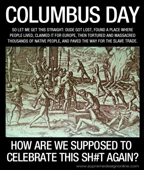 2. Al mal, hay que arrancarlo de raíz, el 12 de octubre deberia ser borrado del calendario, la infamia no merece honores… a la conquista y posterior colonización debería recordárseles del mismo modo que hoy el mundo recuerda la barbarie de la 2da guerra mundial, porque eso exactamente fue lo que vivieron los pueblos de latinoamérica: un holocausto…