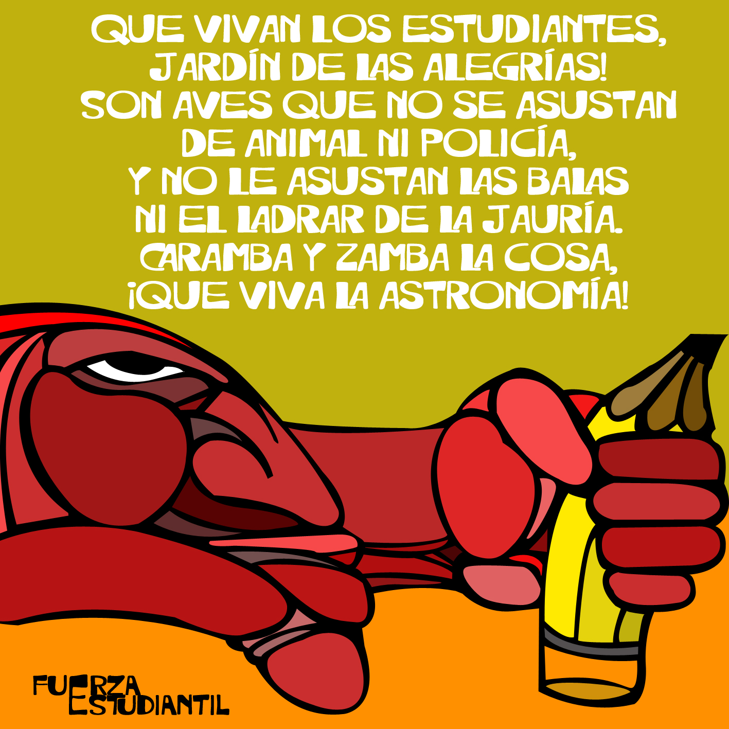Reitero el ánimo de lucha pensante y pacifica que se respira, el espíritu por entender que a partir de la educación, educación de calidad y gratuita, un pueblo tendrá menos problemas sociales y tendrá una construcción real de democracia participativa, que generará una sociedad reflexiva acerca de un presente y un futuro nacional.